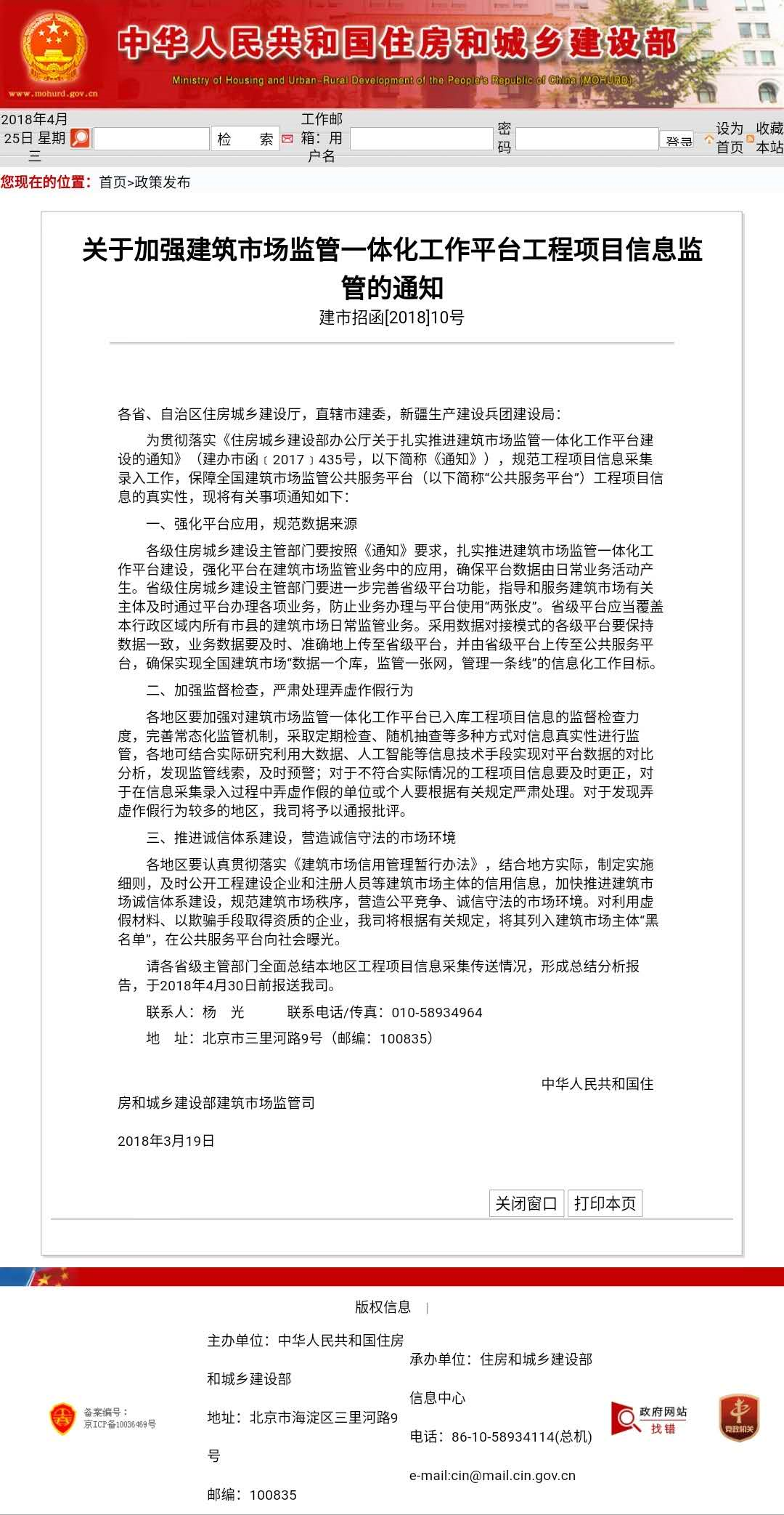 关于加强建筑市场监管一体化工作平台工程项目信息监管的通知